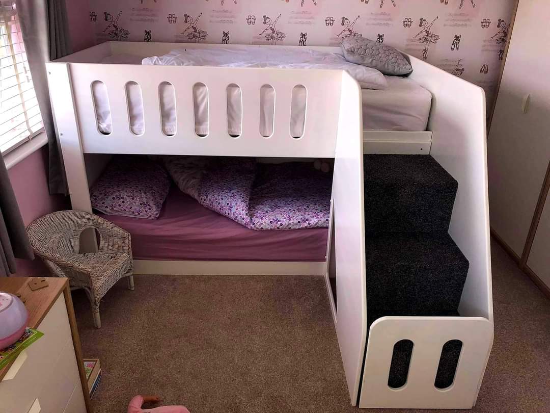- We Can Make Adjustments To The Standard Bunk – Stairs On The Front To Fit The Space You Have Available. The Size Of The Stairs Or The Size Of The Mattress Can Be Altered (However This May Require A Bespoke Mattress) For Any Bespoke Requests Please Contact Us Via Facebook Or Email To Discuss.