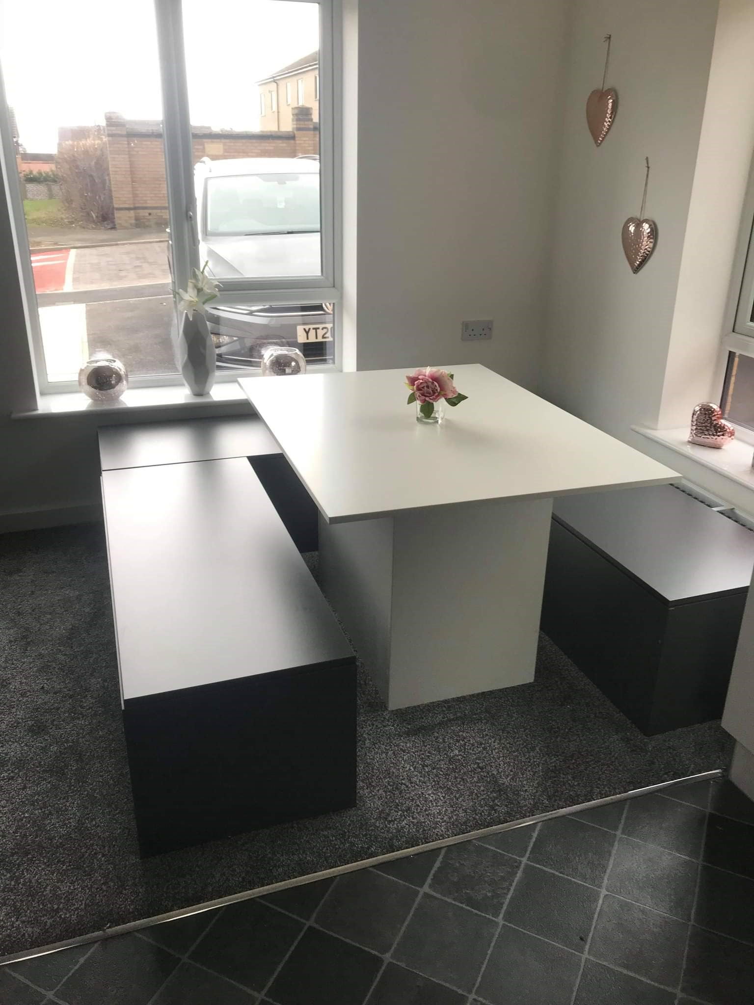 The bench seating is lift up giving you spacious storage solutions as well as looking amazing. As they are made to order we can do them in various colours and sizes.